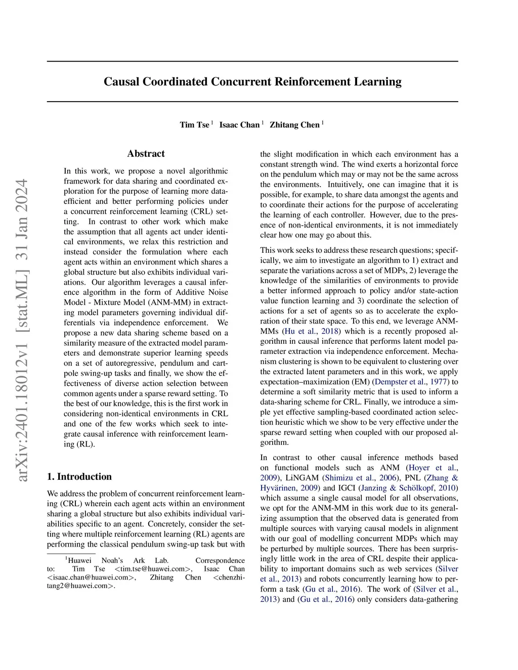 In this work, we propose a novel algorithmic framework for data sharing and coordinated exploration for the purpose of learning more data-efficient and better performing policies under a concurrent reinforcement learning (CRL) setting. In contrast to other work which make the assumption that all agents act under identical environments, we relax this restriction and instead consider the formulation where each agent acts within an environment which shares a global structure but also exhibits individual variations. Our algorithm leverages a causal inference algorithm in the form of Additive Noise Model - Mixture Model (ANM-MM) in extracting model parameters governing individual differentials via independence enforcement. We propose a new data sharing scheme based on a similarity measure of the extracted model parameters and demonstrate superior learning speeds on a set of autoregressive, pendulum and cart-pole swing-up tasks and finally, we show the effectiveness of diverse action selection between common agents under a sparse reward setting. To the best of our knowledge, this is the first work in considering non-identical environments in CRL and one of the few works which seek to integrate causal inference with reinforcement learning (RL).