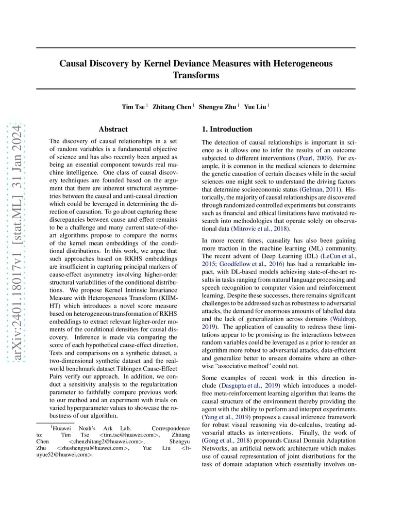 The discovery of causal relationships in a set of random variables is a fundamental objective of science and has also recently been argued as being an essential component towards real machine intelligence. One class of causal discovery techniques are founded based on the argument that there are inherent structural asymmetries between the causal and anti-causal direction which could be leveraged in determining the direction of causation. To go about capturing these discrepancies between cause and effect remains to be a challenge and many current state-of-the-art algorithms propose to compare the norms of the kernel mean embeddings of the conditional distributions. In this work, we argue that such approaches based on RKHS embeddings are insufficient in capturing principal markers of cause-effect asymmetry involving higher-order structural variabilities of the conditional distributions. We propose Kernel Intrinsic Invariance Measure with Heterogeneous Transform (KIIM-HT) which introduces a novel score measure based on heterogeneous transformation of RKHS embeddings to extract relevant higher-order moments of the conditional densities for causal discovery. Inference is made via comparing the score of each hypothetical cause-effect direction. Tests and comparisons on a synthetic dataset, a two-dimensional synthetic dataset and the real-world benchmark dataset T\"ubingen Cause-Effect Pairs verify our approach. In addition, we conduct a sensitivity analysis to the regularization parameter to faithfully compare previous work to our method and an experiment with trials on varied hyperparameter values to showcase the robustness of our algorithm.