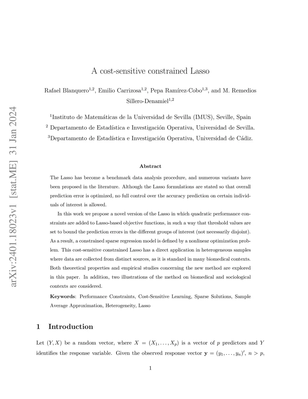A cost-sensitive constrained Lasso