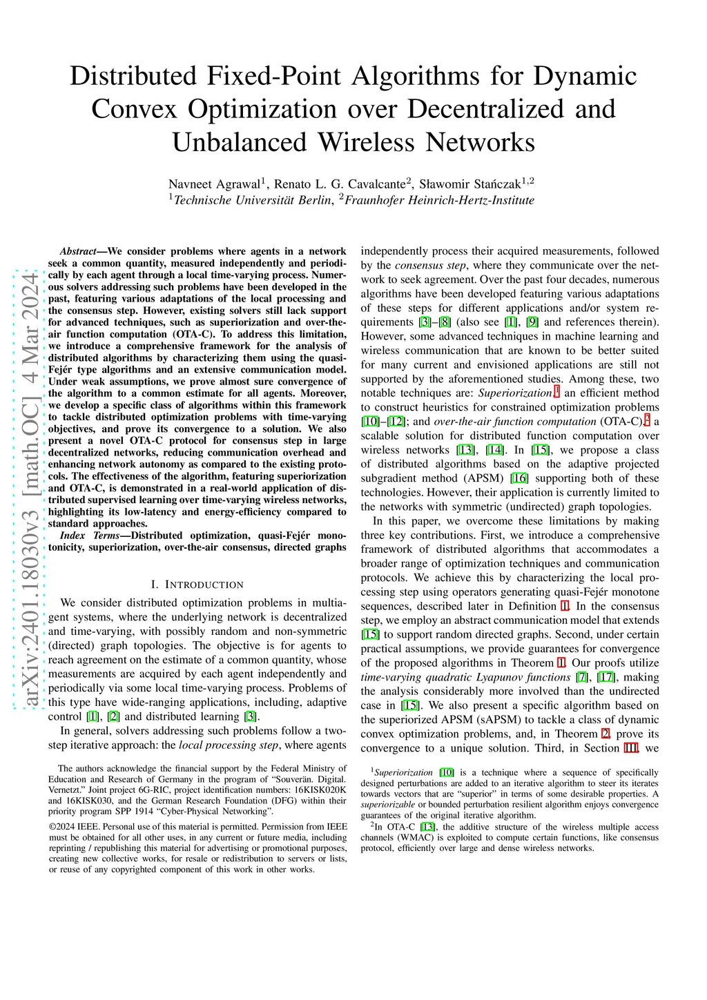 We consider problems where agents in a network seek a common quantity, measured independently and periodically by each agent through a local time-varying process. Numerous solvers addressing such problems have been developed in the past, featuring various adaptations of the local processing and the consensus step. However, existing solvers still lack support for advanced techniques, such as superiorization and over-the-air function computation (OTA-C). To address this limitation, we introduce a comprehensive framework for the analysis of distributed algorithms by characterizing them using the quasi-Fej\ér type algorithms and an extensive communication model. Under weak assumptions, we prove almost sure convergence of the algorithm to a common estimate for all agents. Moreover, we develop a specific class of algorithms within this framework to tackle distributed optimization problems with time-varying objectives, and, assuming that a time-invariant solution exists, prove its convergence to a solution. We also present a novel OTA-C protocol for consensus step in large decentralized networks, reducing communication overhead and enhancing network autonomy as compared to the existing protocols. The effectiveness of the algorithm, featuring superiorization and OTA-C, is demonstrated in a real-world application of distributed supervised learning over time-varying wireless networks, highlighting its low-latency and energy-efficiency compared to standard approaches.