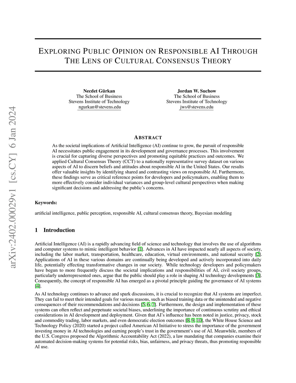 As the societal implications of Artificial Intelligence (AI) continue to grow, the pursuit of responsible AI necessitates public engagement in its development and governance processes. This involvement is crucial for capturing diverse perspectives and promoting equitable practices and outcomes. We applied Cultural Consensus Theory (CCT) to a nationally representative survey dataset on various aspects of AI to discern beliefs and attitudes about responsible AI in the United States. Our results offer valuable insights by identifying shared and contrasting views on responsible AI. Furthermore, these findings serve as critical reference points for developers and policymakers, enabling them to more effectively consider individual variances and group-level cultural perspectives when making significant decisions and addressing the public's concerns.