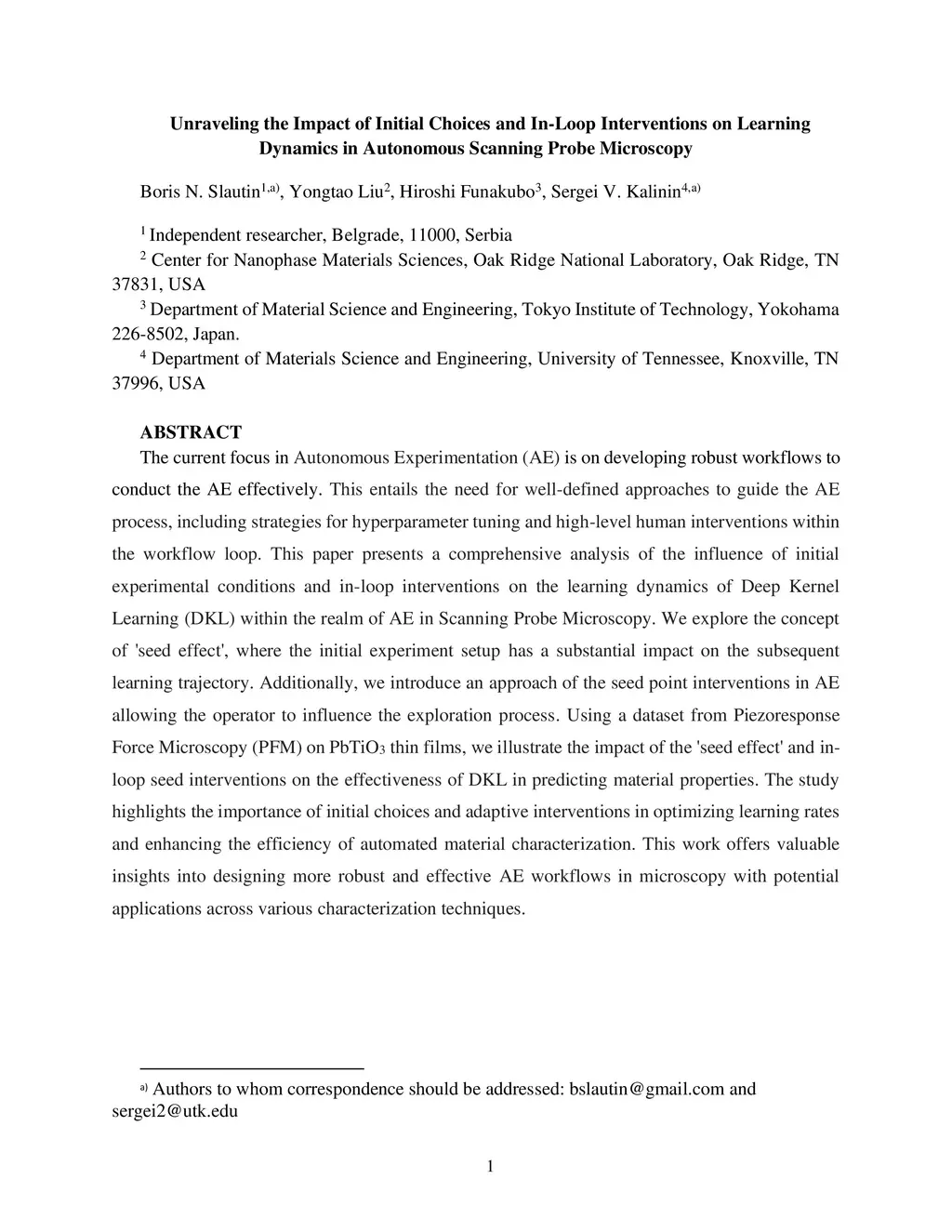 The current focus in Autonomous Experimentation (AE) is on developing robust workflows to conduct the AE effectively. This entails the need for well-defined approaches to guide the AE process, including strategies for hyperparameter tuning and high-level human interventions within the workflow loop. This paper presents a comprehensive analysis of the influence of initial experimental conditions and in-loop interventions on the learning dynamics of Deep Kernel Learning (DKL) within the realm of AE in Scanning Probe Microscopy. We explore the concept of 'seed effect', where the initial experiment setup has a substantial impact on the subsequent learning trajectory. Additionally, we introduce an approach of the seed point interventions in AE allowing the operator to influence the exploration process. Using a dataset from Piezoresponse Force Microscopy (PFM) on PbTiO3 thin films, we illustrate the impact of the 'seed effect' and in-loop seed interventions on the effectiveness of DKL in predicting material properties. The study highlights the importance of initial choices and adaptive interventions in optimizing learning rates and enhancing the efficiency of automated material characterization. This work offers valuable insights into designing more robust and effective AE workflows in microscopy with potential applications across various characterization techniques. The analysis code that supports the funding is publicly available at https://github.com/Slautin/2024_Seed_effect_DKL_BO.
