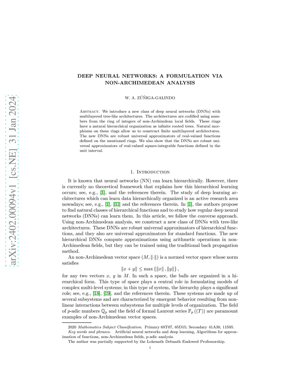 Deep Neural Networks: A Formulation Via Non-Archimedean Analysis