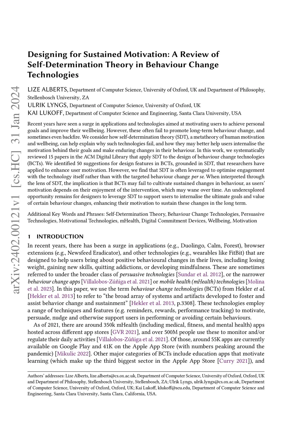 Recent years have seen a surge in applications and technologies aimed at motivating users to achieve personal goals and improve their wellbeing. However, these often fail to promote long-term behaviour change, and sometimes even backfire. We consider how self-determination theory (SDT), a metatheory of human motivation and wellbeing, can help explain why such technologies fail, and how they may better help users internalise the motivation behind their goals and make enduring changes in their behaviour. In this work, we systematically reviewed 15 papers in the ACM Digital Library that apply SDT to the design of behaviour change technologies (BCTs). We identified 50 suggestions for design features in BCTs, grounded in SDT, that researchers have applied to enhance user motivation. However, we find that SDT is often leveraged to optimise engagement with the technology itself rather than with the targeted behaviour change per se. When interpreted through the lens of SDT, the implication is that BCTs may fail to cultivate sustained changes in behaviour, as users' motivation depends on their enjoyment of the intervention, which may wane over time. An underexplored opportunity remains for designers to leverage SDT to support users to internalise the ultimate goals and value of certain behaviour changes, enhancing their motivation to sustain these changes in the long term.