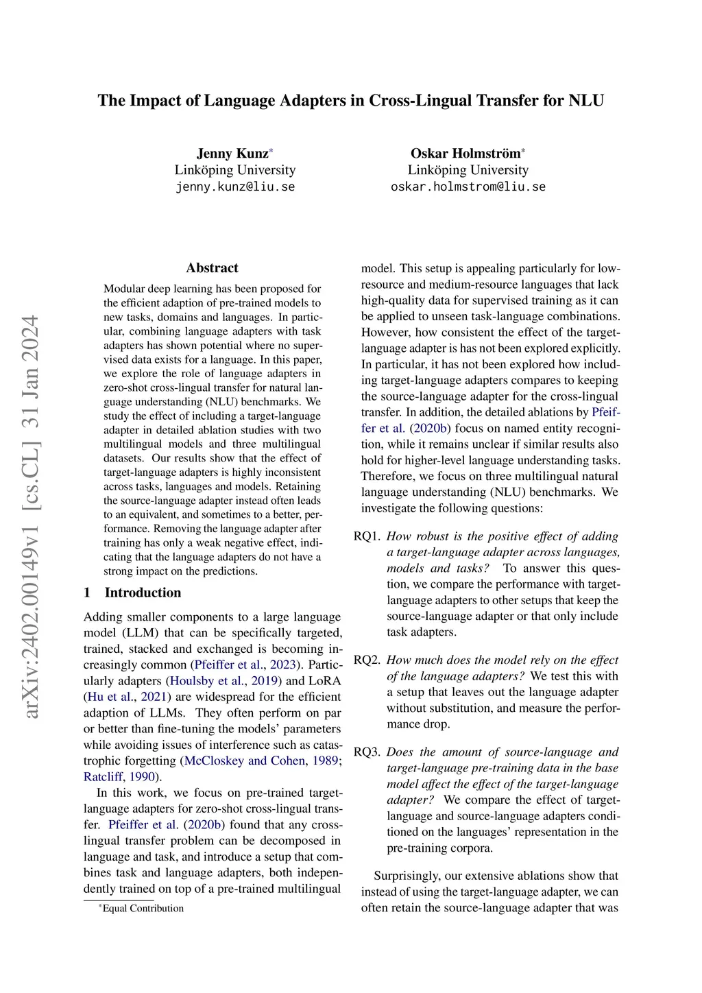 The Impact of Language Adapters in Cross-Lingual Transfer for NLU