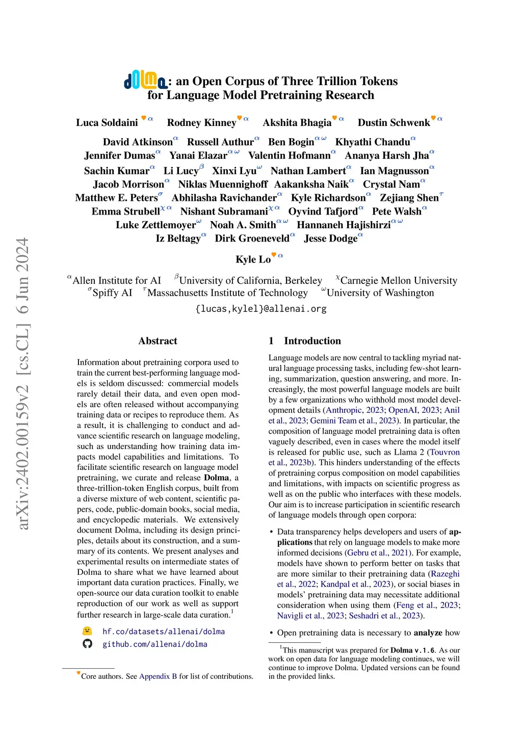 Dolma: an Open Corpus of Three Trillion Tokens for Language Model