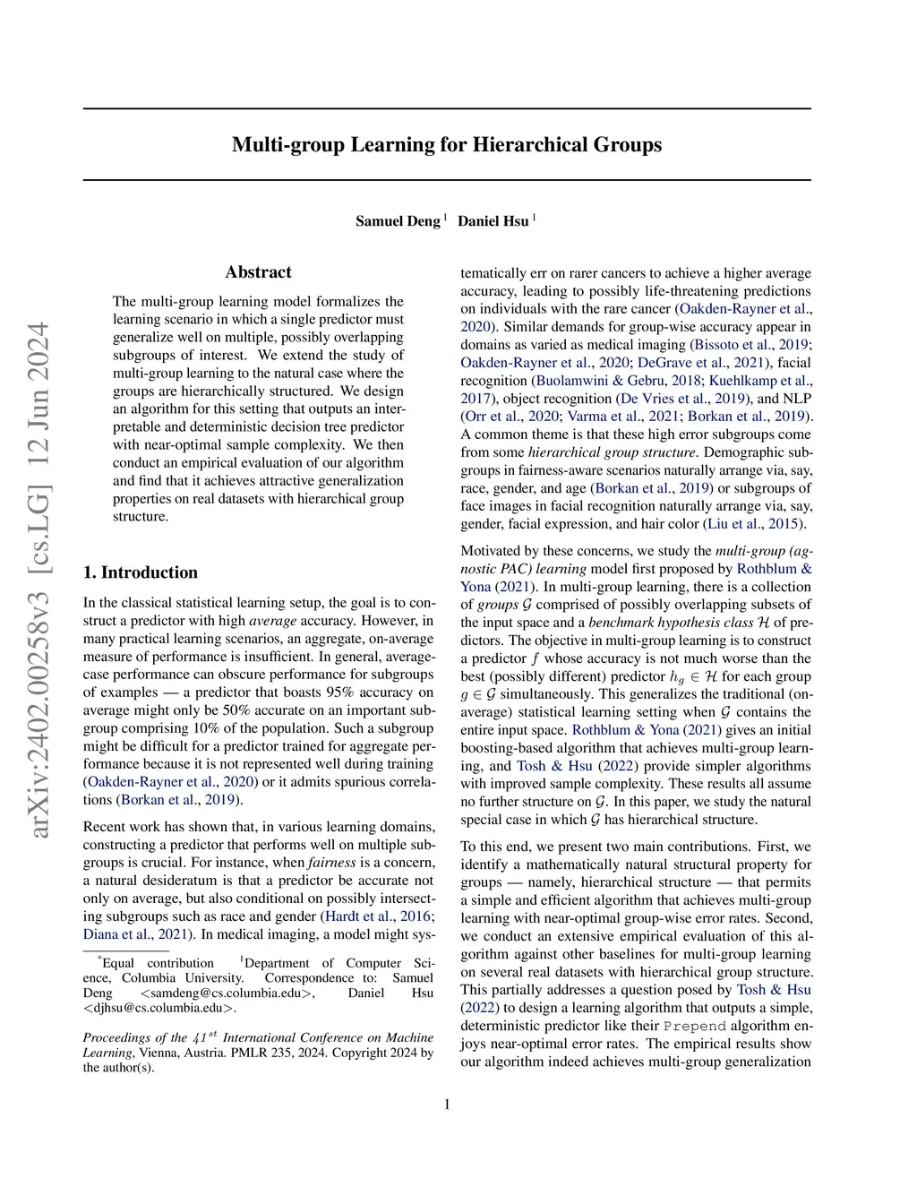 Multi-group Learning for Hierarchical Groups