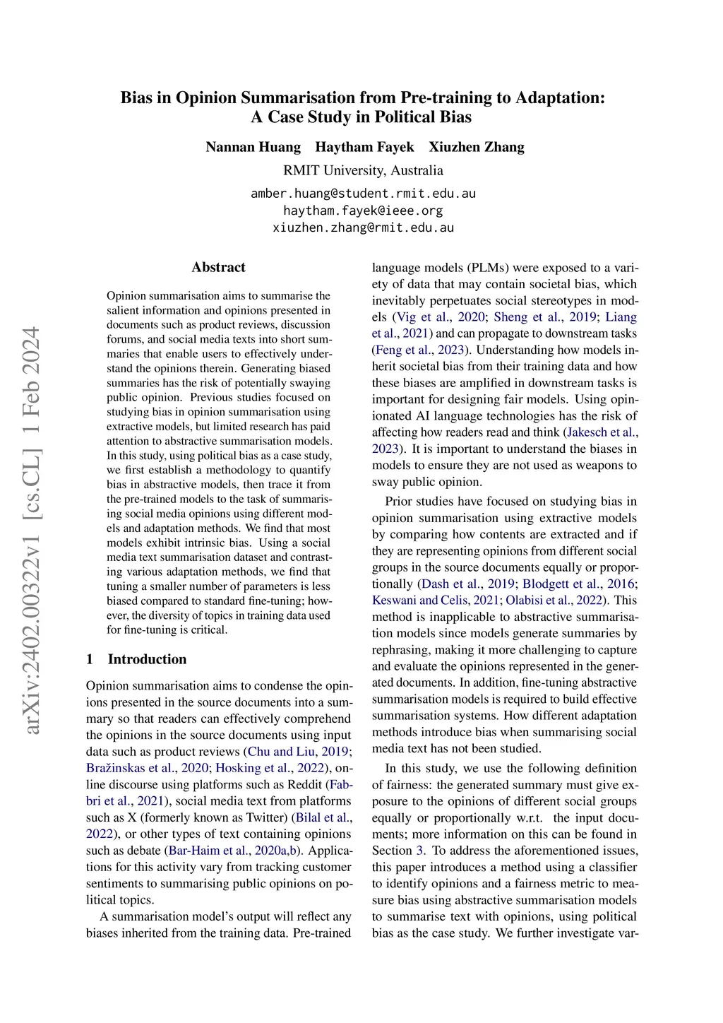 Bias in Opinion Summarisation from Pre-training to Adaptation: A Case