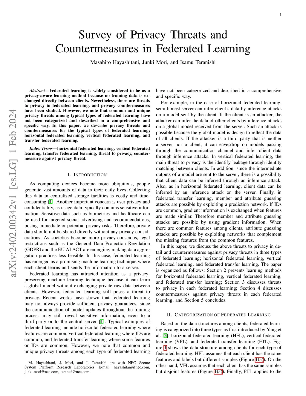 Survey of Privacy Threats and Countermeasures in Federated Learning