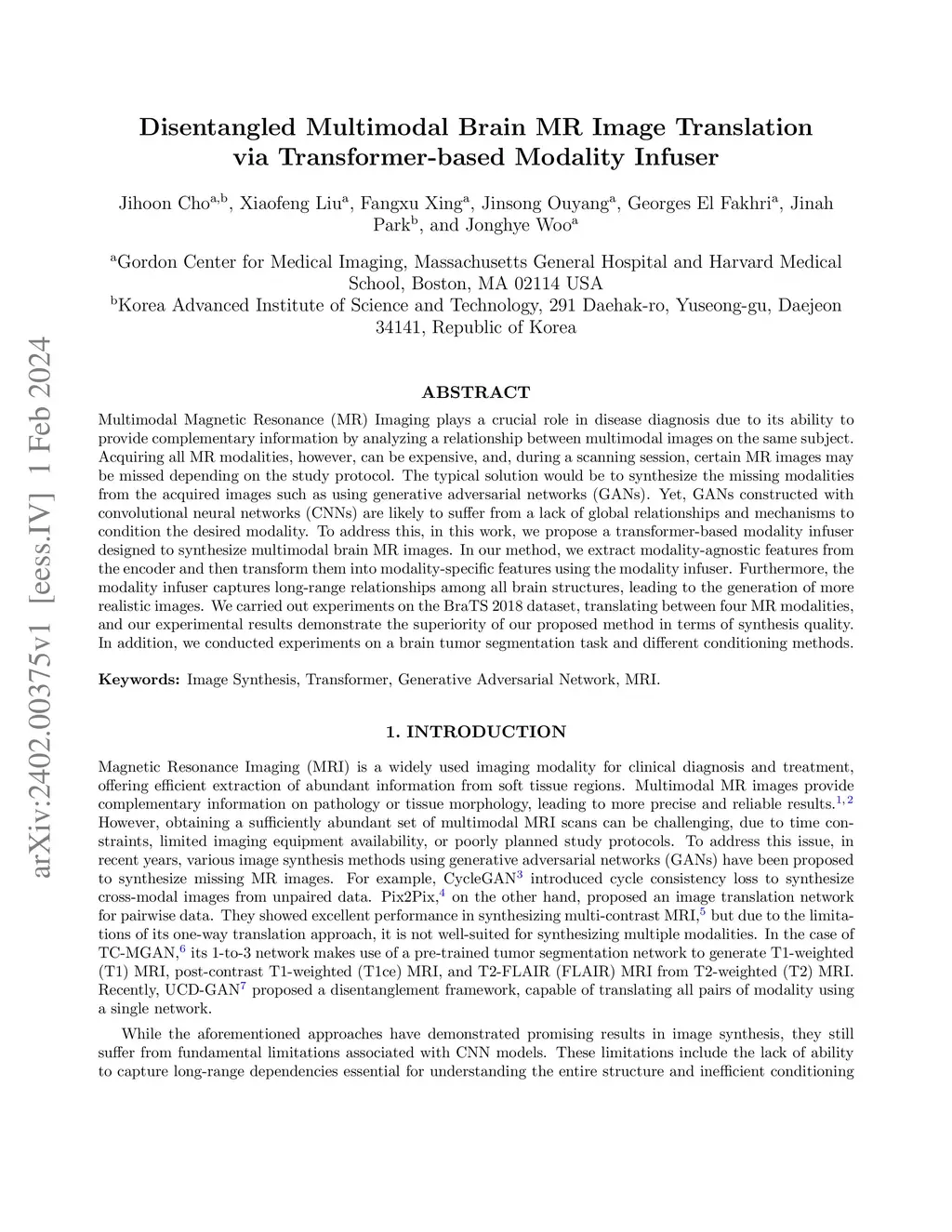 Disentangled Multimodal Brain MR Image Translation via Transformer-based