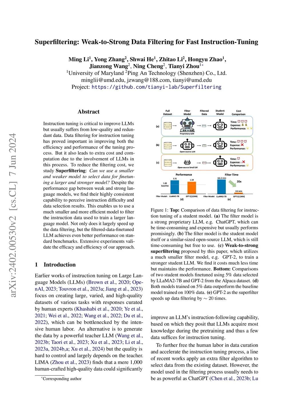 Superfiltering: Weak-to-Strong Data Filtering for Fast