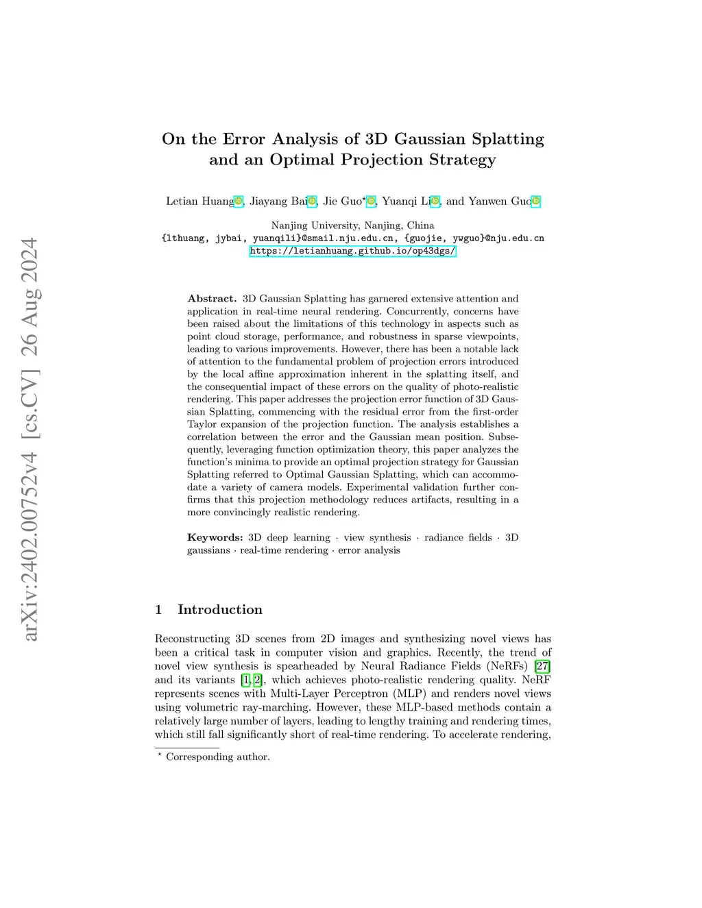 On the Error Analysis of 3D Gaussian Splatting and an Optimal Projection