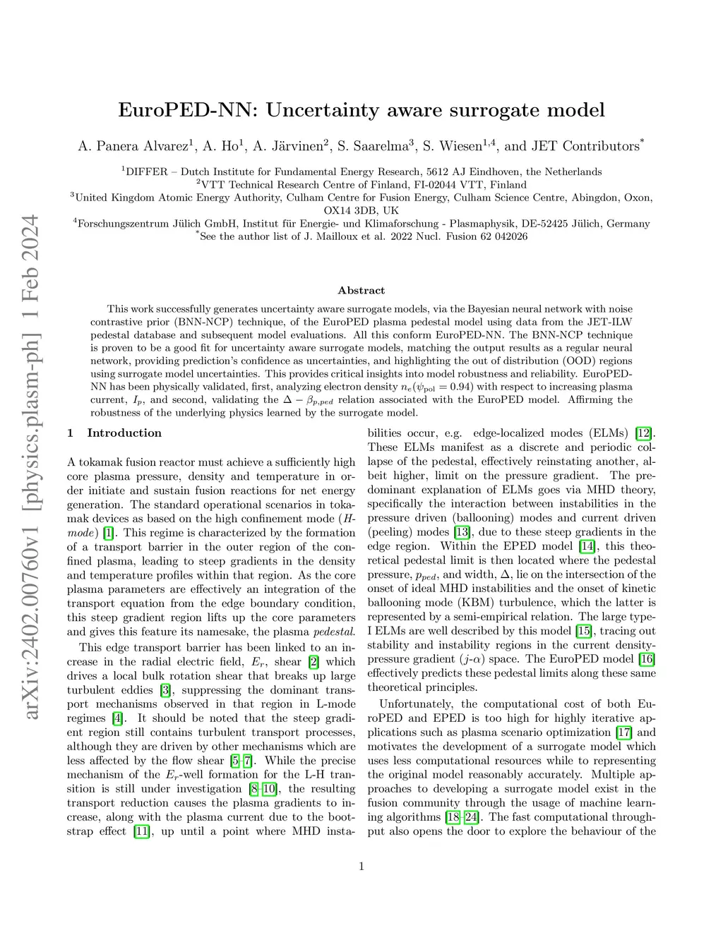 EuroPED-NN: Uncertainty aware surrogate model