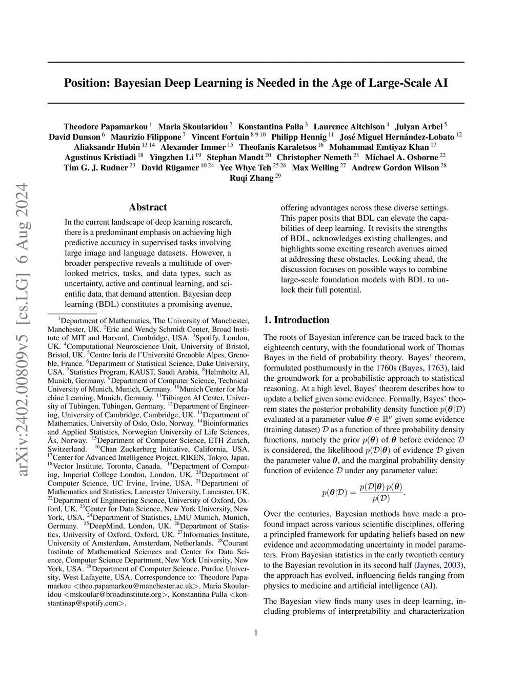 Position: Bayesian Deep Learning is Needed in the Age of Large-Scale AI