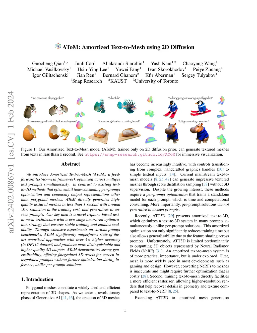 AToM: Amortized Text-to-Mesh using 2D Diffusion