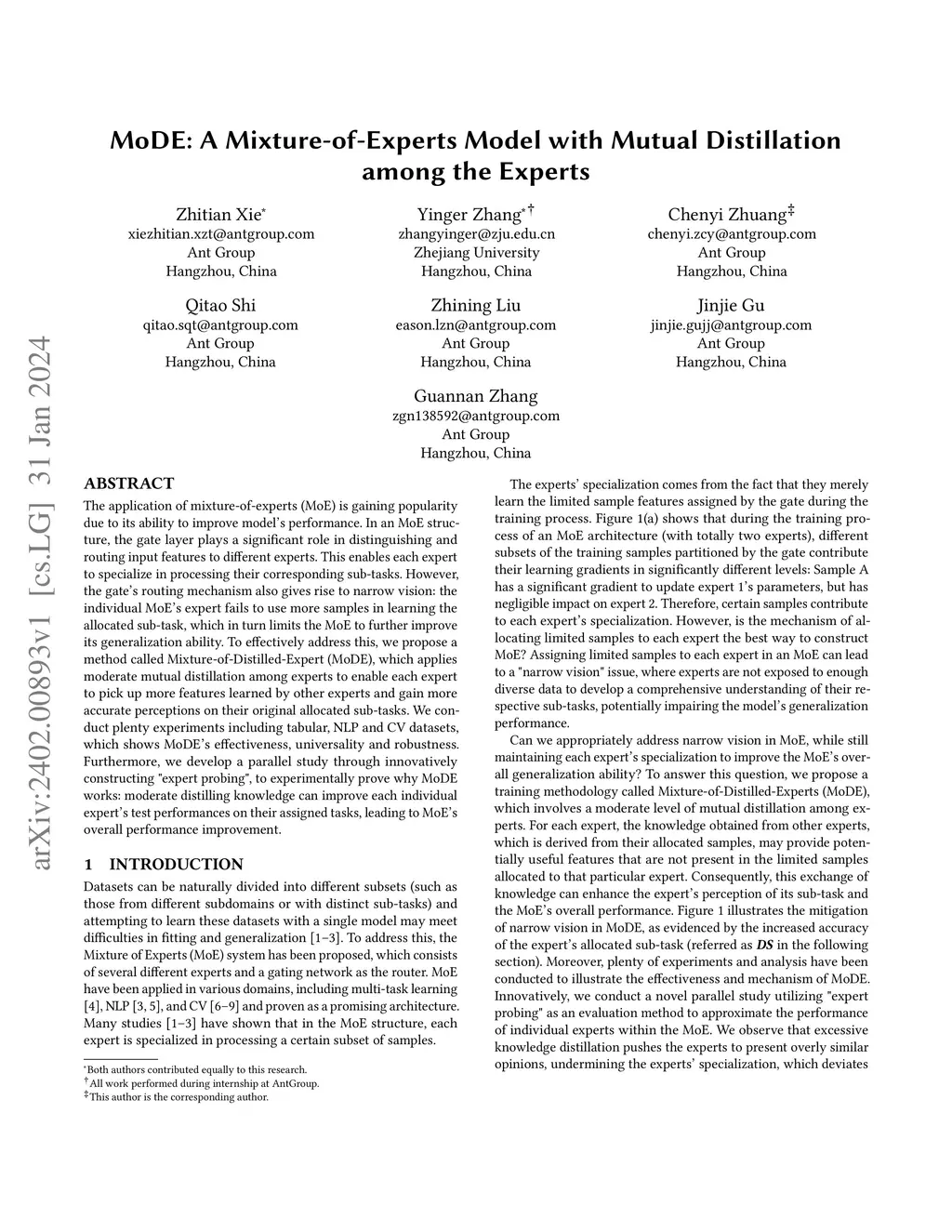 MoDE: A Mixture-of-Experts Model with Mutual Distillation among the