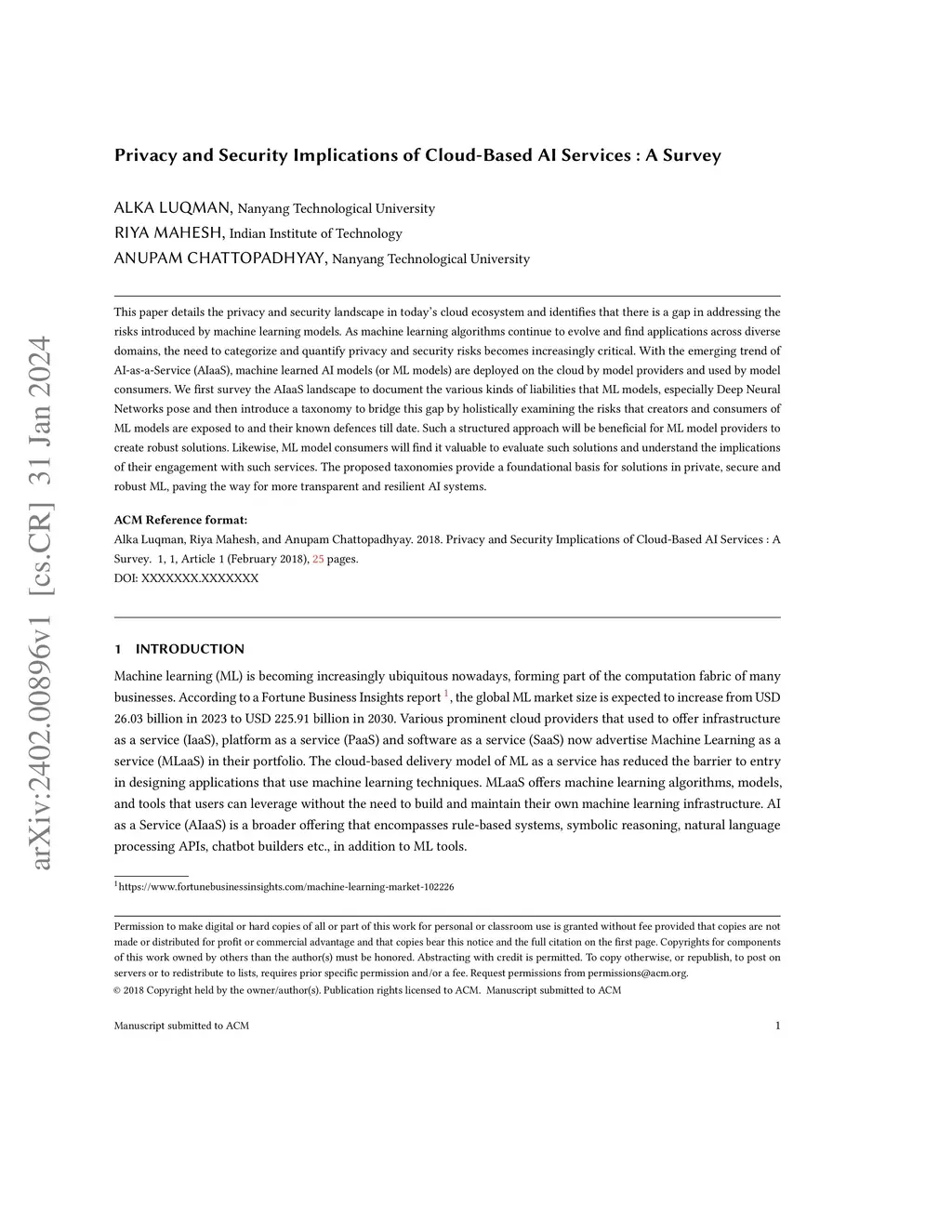 Privacy and Security Implications of Cloud-Based AI Services : A Survey