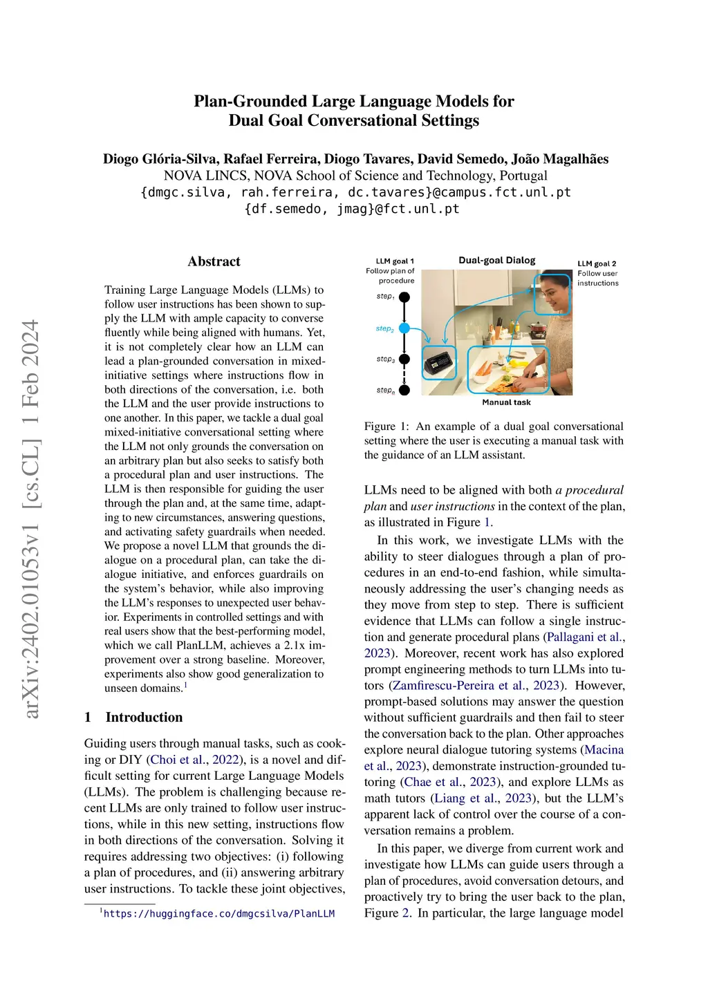 Plan-Grounded Large Language Models for Dual Goal Conversational