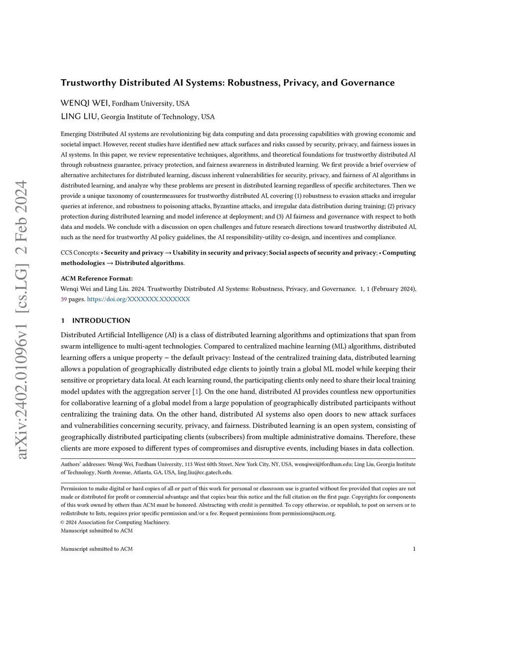 Trustworthy Distributed AI Systems: Robustness, Privacy, and Governance