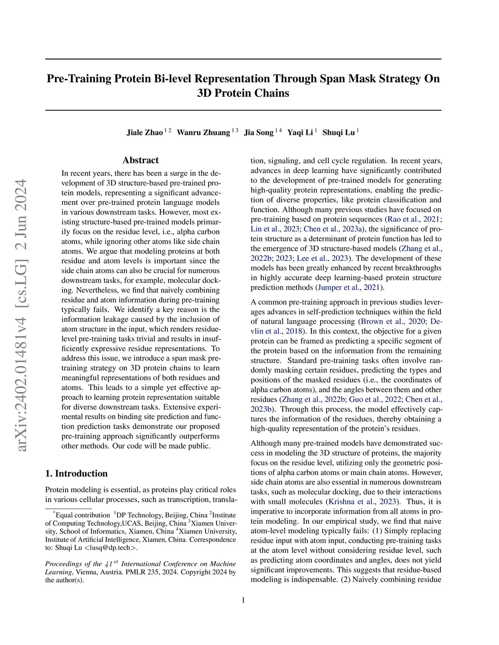 Pre-Training Protein Bi-level Representation Through Span Mask Strategy