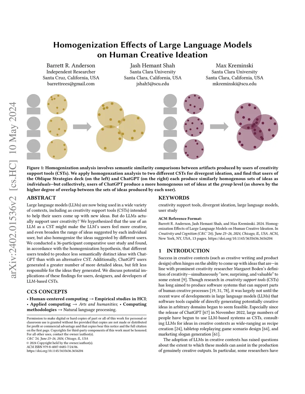 Large language models (LLMs) are now being used in a wide variety of contexts, including as creativity support tools (CSTs) intended to help their users come up with new ideas. But do LLMs actually support user creativity? We hypothesized that the use of an LLM as a CST might make the LLM's users feel more creative, and even broaden the range of ideas suggested by each individual user, but also homogenize the ideas suggested by different users. We conducted a 36-participant comparative user study and found, in accordance with the homogenization hypothesis, that different users tended to produce less semantically distinct ideas with ChatGPT than with an alternative CST. Additionally, ChatGPT users generated a greater number of more detailed ideas, but felt less responsible for the ideas they generated. We discuss potential implications of these findings for users, designers, and developers of LLM-based CSTs.