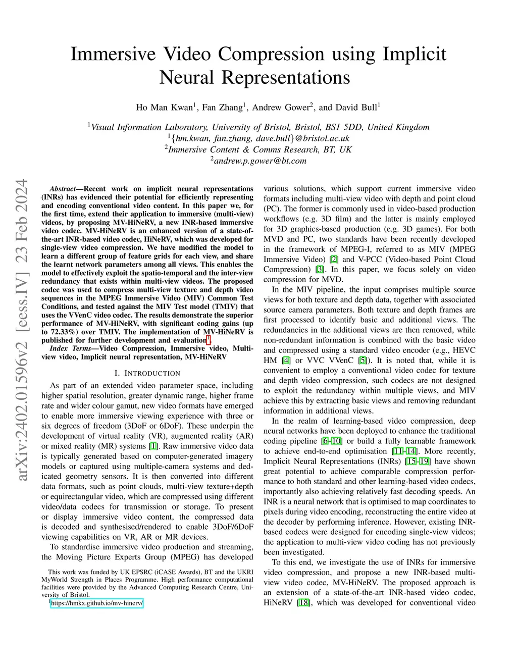 Immersive Video Compression using Implicit Neural Representations