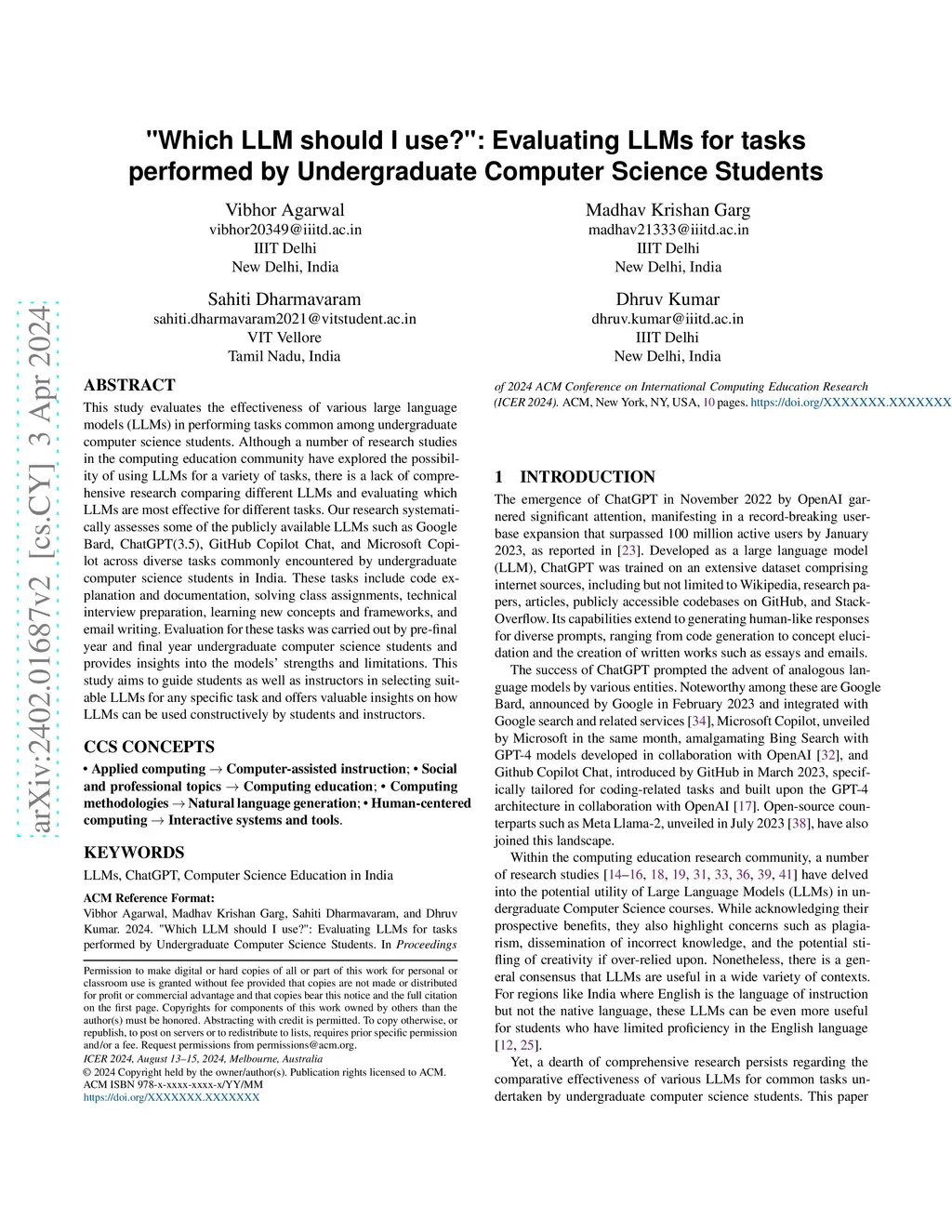 This study evaluates the effectiveness of various large language models (LLMs) in performing tasks common among undergraduate computer science students. Although a number of research studies in the computing education community have explored the possibility of using LLMs for a variety of tasks, there is a lack of comprehensive research comparing different LLMs and evaluating which LLMs are most effective for different tasks. Our research systematically assesses some of the publicly available LLMs such as Google Bard, ChatGPT(3.5), GitHub Copilot Chat, and Microsoft Copilot across diverse tasks commonly encountered by undergraduate computer science students in India. These tasks include code explanation and documentation, solving class assignments, technical interview preparation, learning new concepts and frameworks, and email writing. Evaluation for these tasks was carried out by pre-final year and final year undergraduate computer science students and provides insights into the models' strengths and limitations. This study aims to guide students as well as instructors in selecting suitable LLMs for any specific task and offers valuable insights on how LLMs can be used constructively by students and instructors.