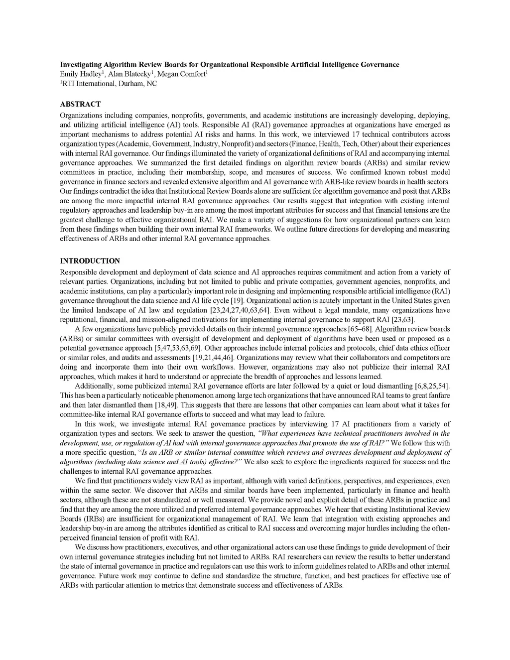 Organizations including companies, nonprofits, governments, and academic institutions are increasingly developing, deploying, and utilizing artificial intelligence (AI) tools. Responsible AI (RAI) governance approaches at organizations have emerged as important mechanisms to address potential AI risks and harms. In this work, we interviewed 17 technical contributors across organization types (Academic, Government, Industry, Nonprofit) and sectors (Finance, Health, Tech, Other) about their experiences with internal RAI governance. Our findings illuminated the variety of organizational definitions of RAI and accompanying internal governance approaches. We summarized the first detailed findings on algorithm review boards (ARBs) and similar review committees in practice, including their membership, scope, and measures of success. We confirmed known robust model governance in finance sectors and revealed extensive algorithm and AI governance with ARB-like review boards in health sectors. Our findings contradict the idea that Institutional Review Boards alone are sufficient for algorithm governance and posit that ARBs are among the more impactful internal RAI governance approaches. Our results suggest that integration with existing internal regulatory approaches and leadership buy-in are among the most important attributes for success and that financial tensions are the greatest challenge to effective organizational RAI. We make a variety of suggestions for how organizational partners can learn from these findings when building their own internal RAI frameworks. We outline future directions for developing and measuring effectiveness of ARBs and other internal RAI governance approaches.