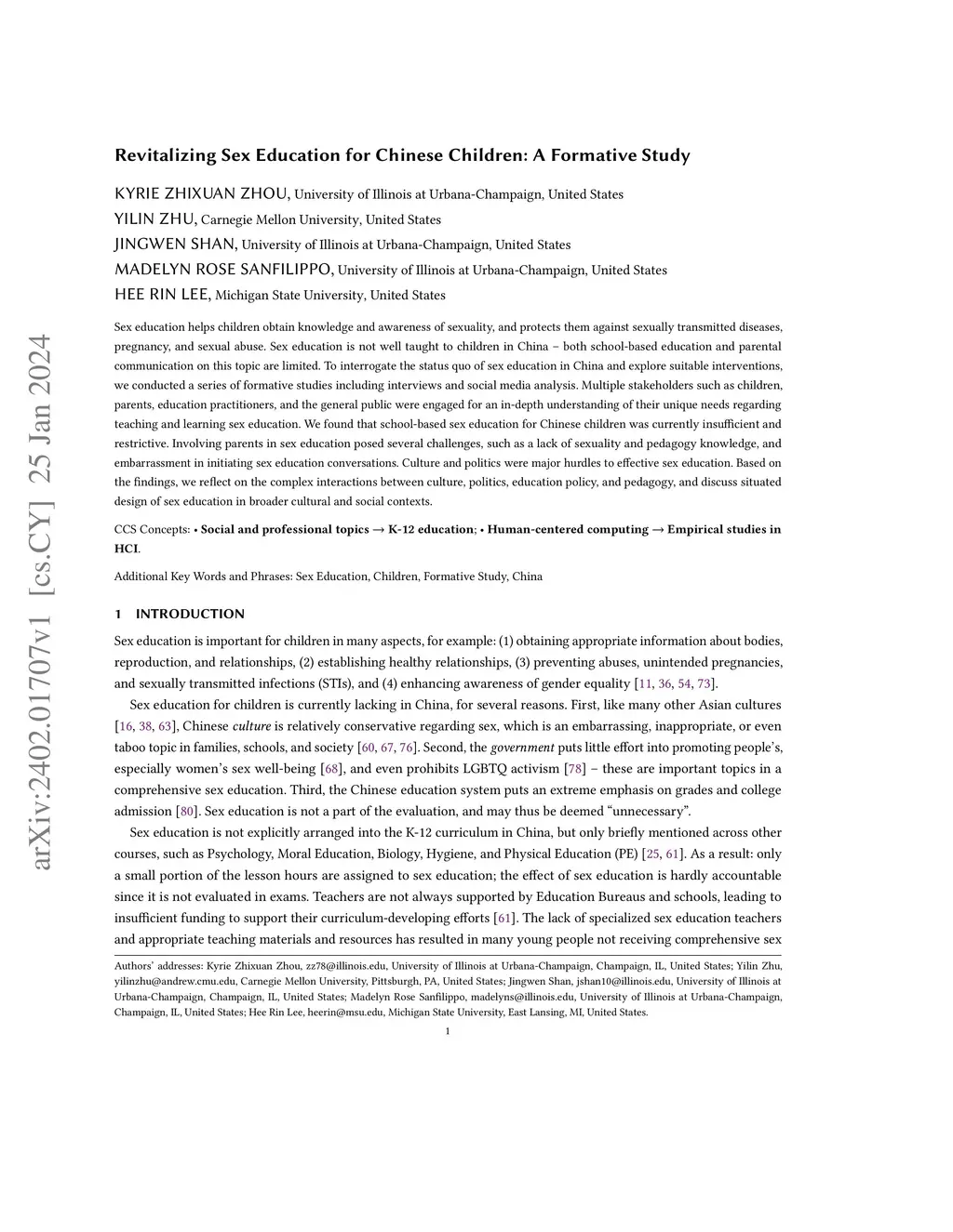 Revitalizing Sex Education for Chinese Children: A Formative Study