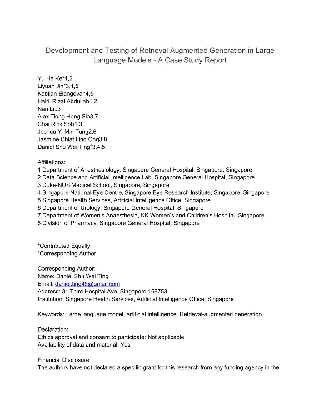 Development and Testing of Retrieval Augmented Generation in Large