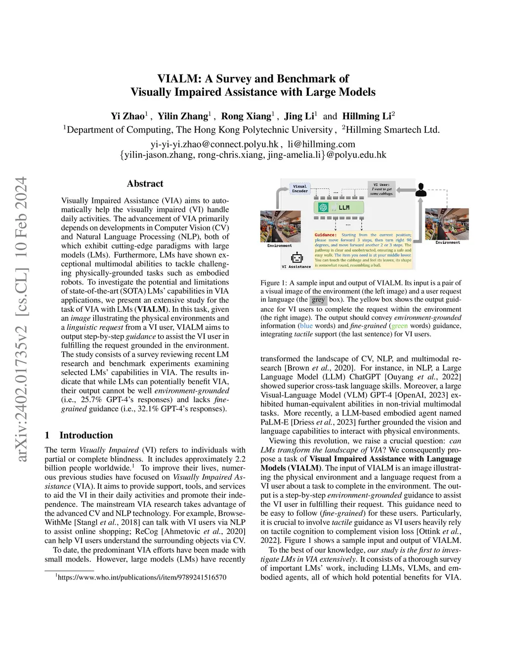 VIALM: A Survey and Benchmark of Visually Impaired Assistance with Large