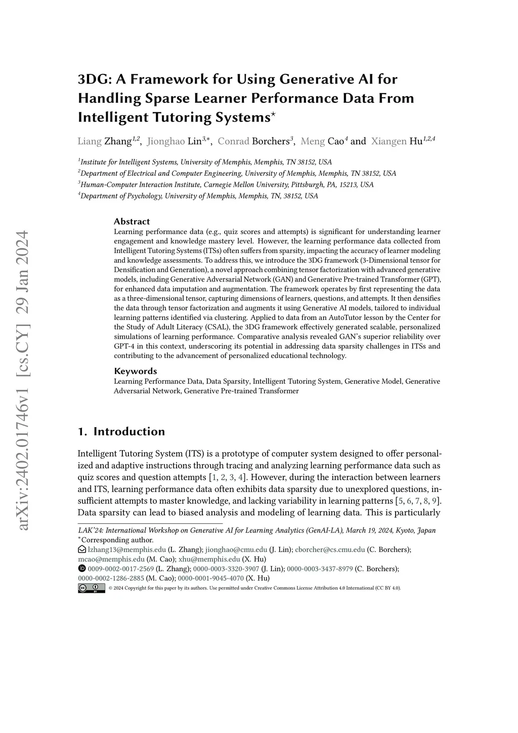 3DG: A Framework for Using Generative AI for Handling Sparse Learner