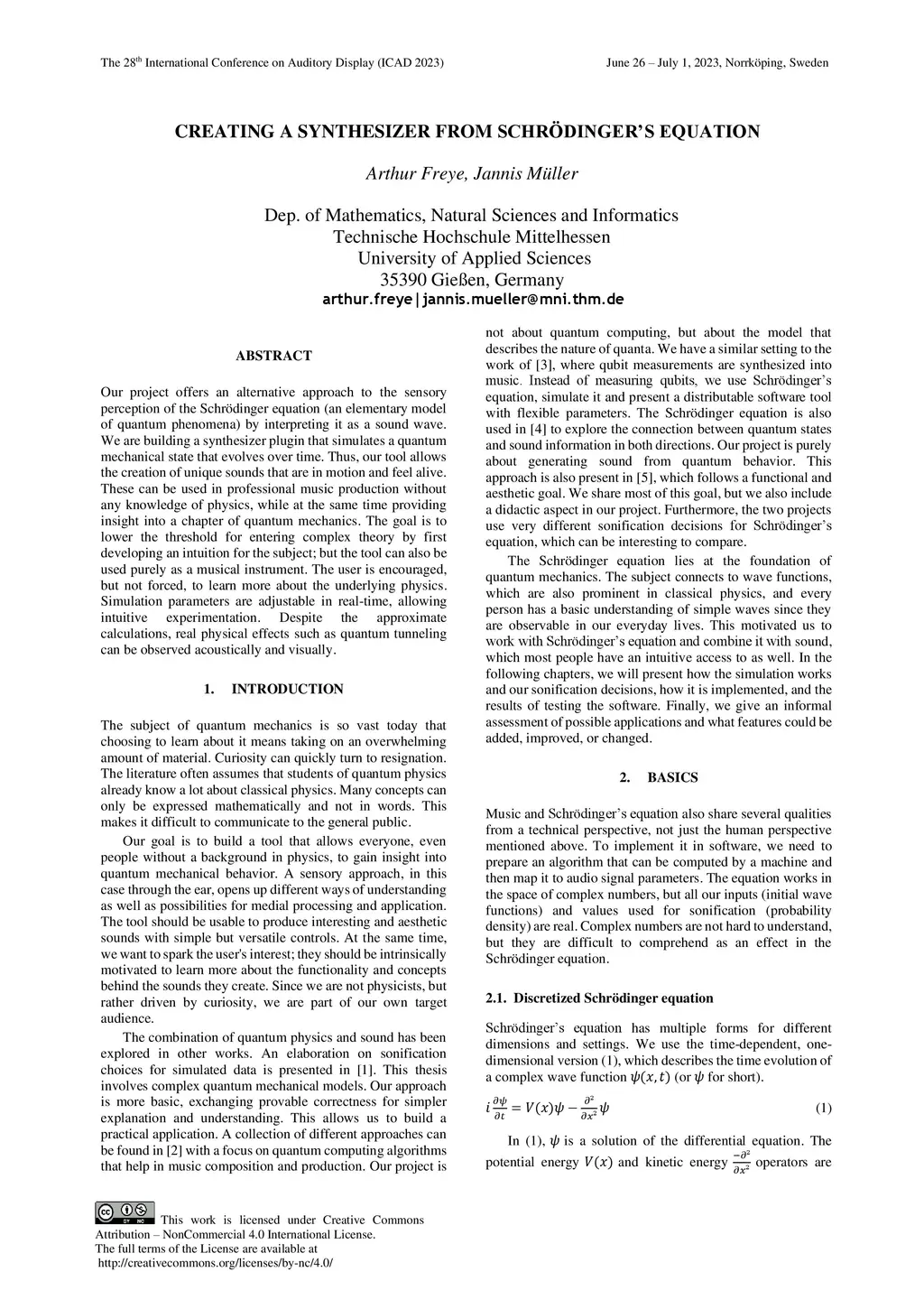 Our project offers an alternative approach to the sensory perception of the Schr\"odinger equation (an elementary model of quantum phenomena) by interpreting it as a sound wave. We are building a synthesizer plugin that simulates a quantum mechanical state that evolves over time. Thus, our tool allows the creation of unique sounds that are in motion and feel alive. These can be used in professional music production without any knowledge of physics, while at the same time providing insight into a chapter of quantum mechanics. The goal is to lower the threshold for entering complex theory by first developing an intuition for the subject; but the tool can also be used purely as a musical instrument. The user is encouraged, but not forced, to learn more about the underlying physics. Simulation parameters are adjustable in real-time, allowing intuitive experimentation. Despite the approximate calculations, real physical effects such as quantum tunneling can be observed acoustically and visually.