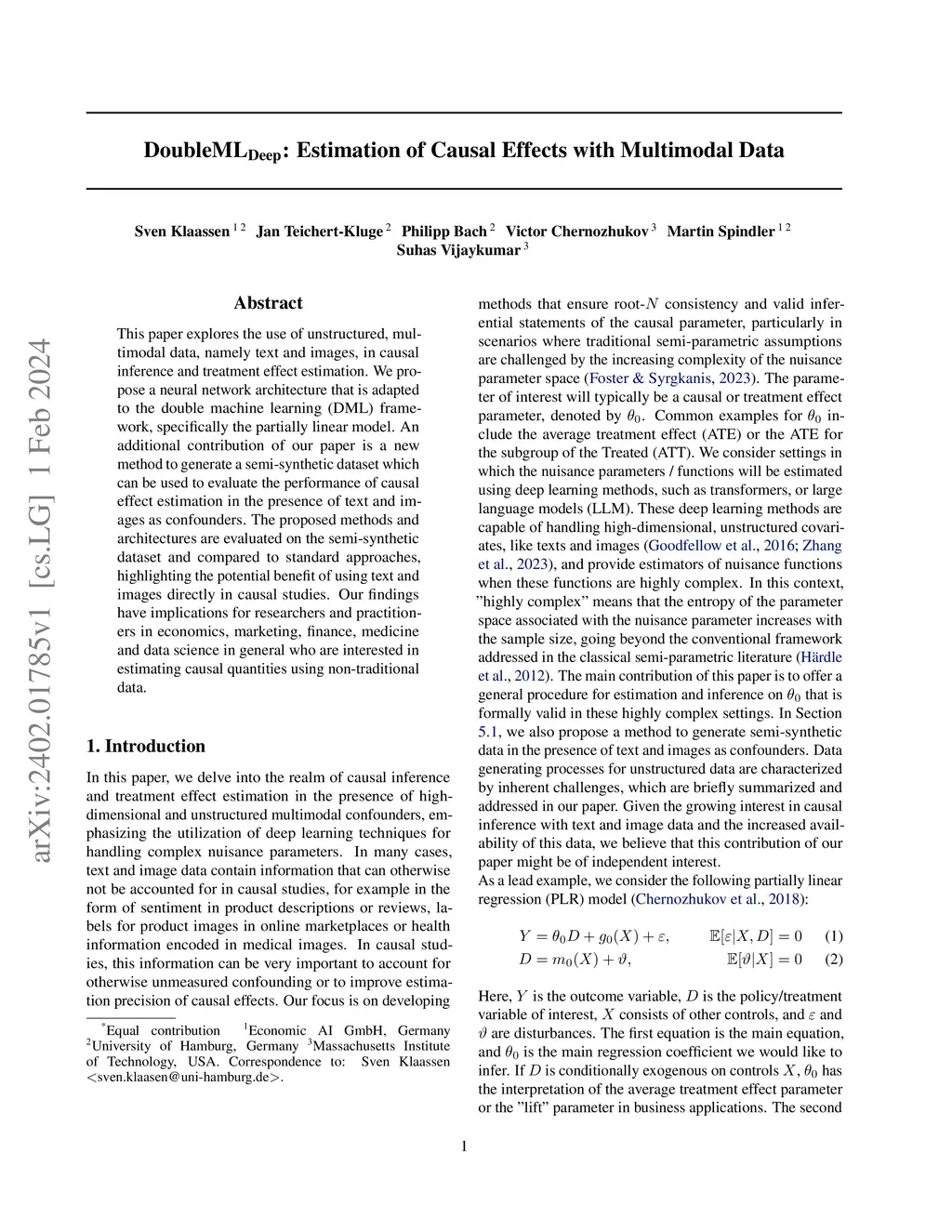 DoubleMLDeep: Estimation of Causal Effects with Multimodal Data
