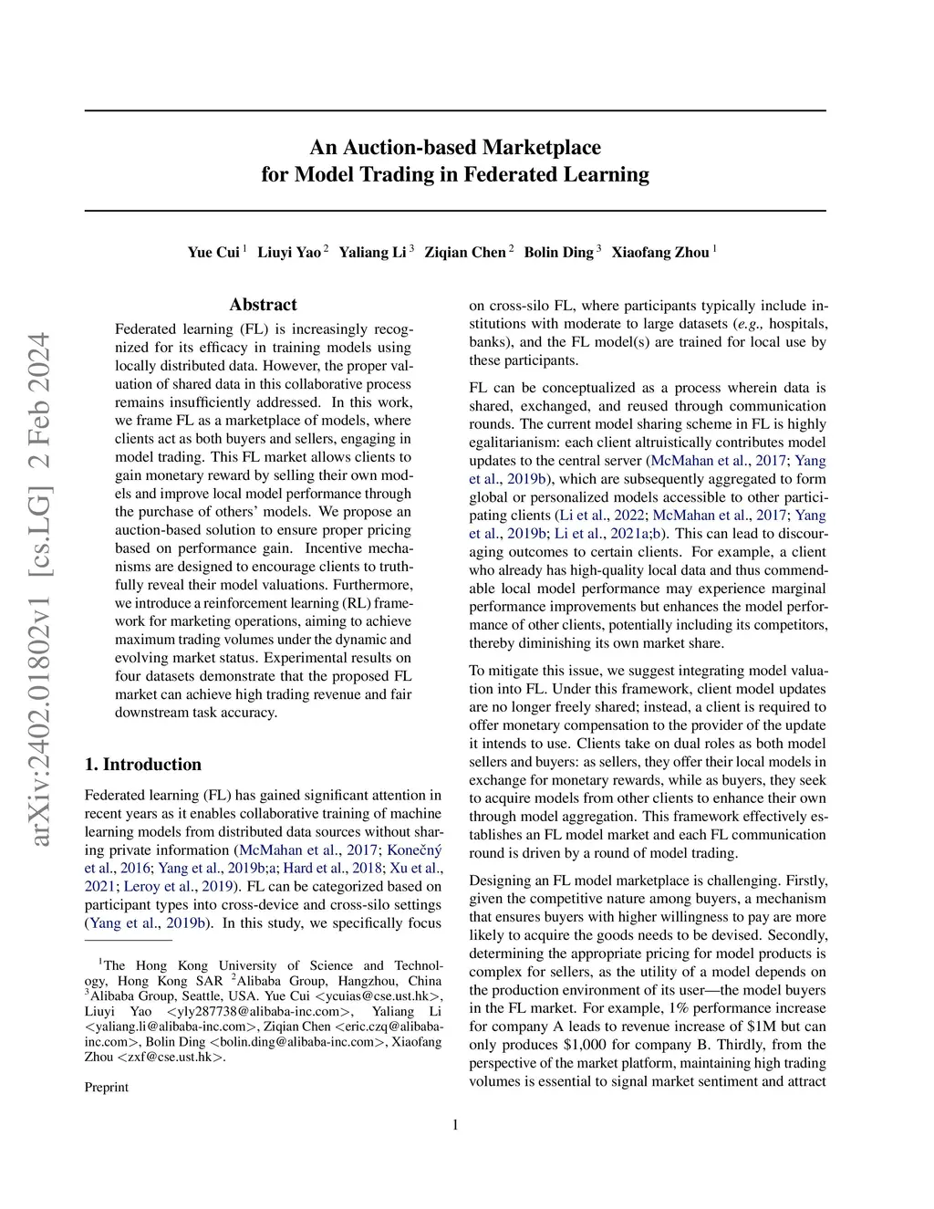 An Auction-based Marketplace for Model Trading in Federated Learning