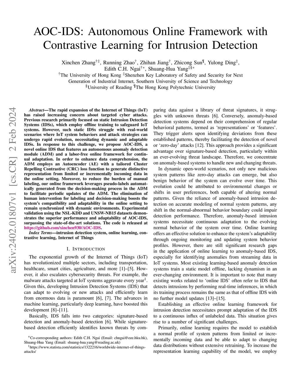 AOC-IDS: Autonomous Online Framework with Contrastive Learning for
