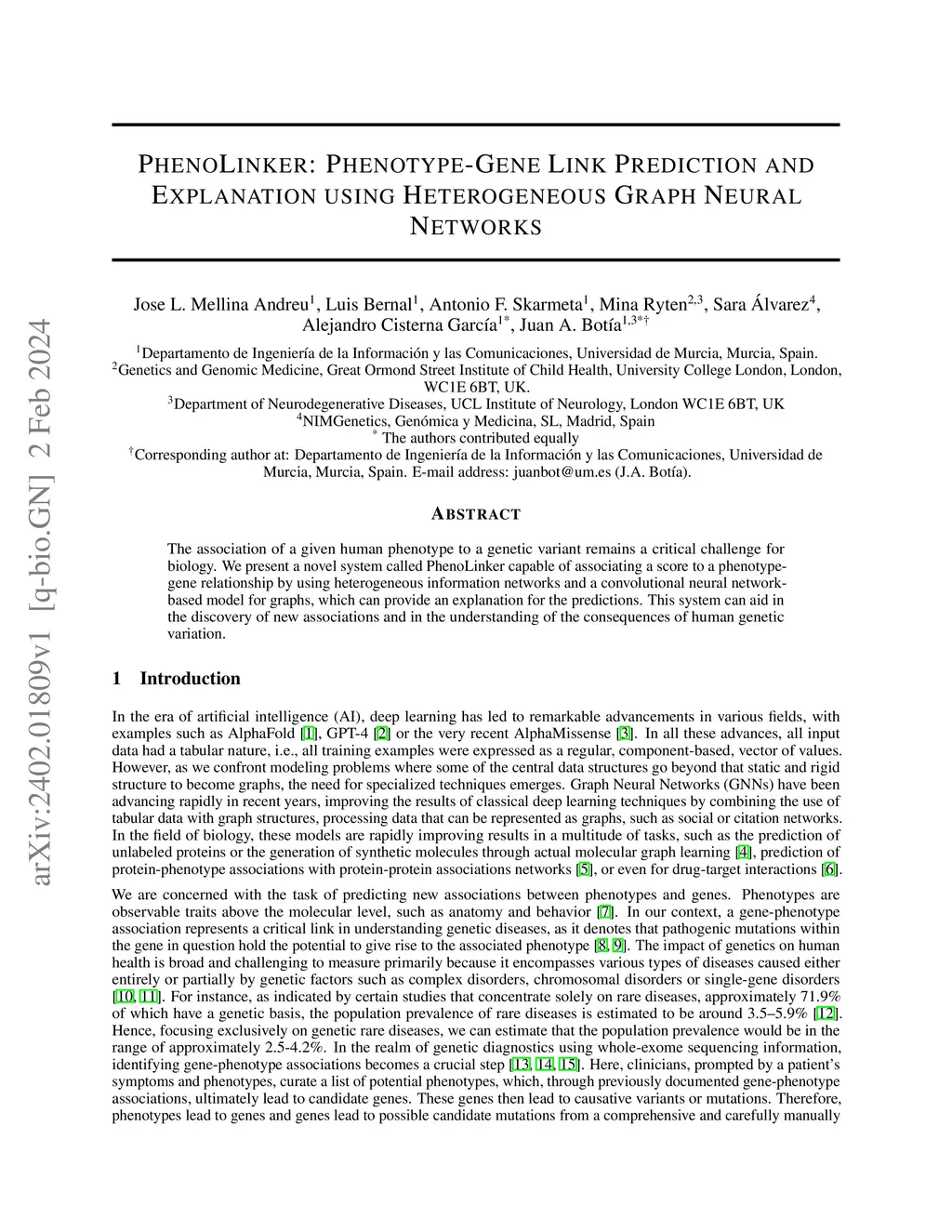 The association of a given human phenotype to a genetic variant remains a critical challenge for biology. We present a novel system called PhenoLinker capable of associating a score to a phenotype-gene relationship by using heterogeneous information networks and a convolutional neural network-based model for graphs, which can provide an explanation for the predictions. This system can aid in the discovery of new associations and in the understanding of the consequences of human genetic variation.