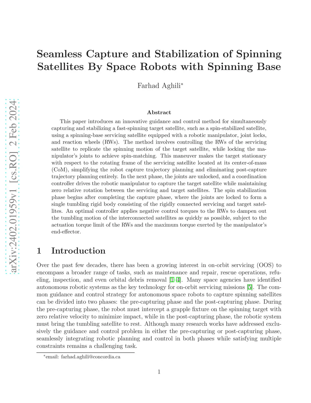 Seamless Capture and Stabilization of Spinning Satellites By Space