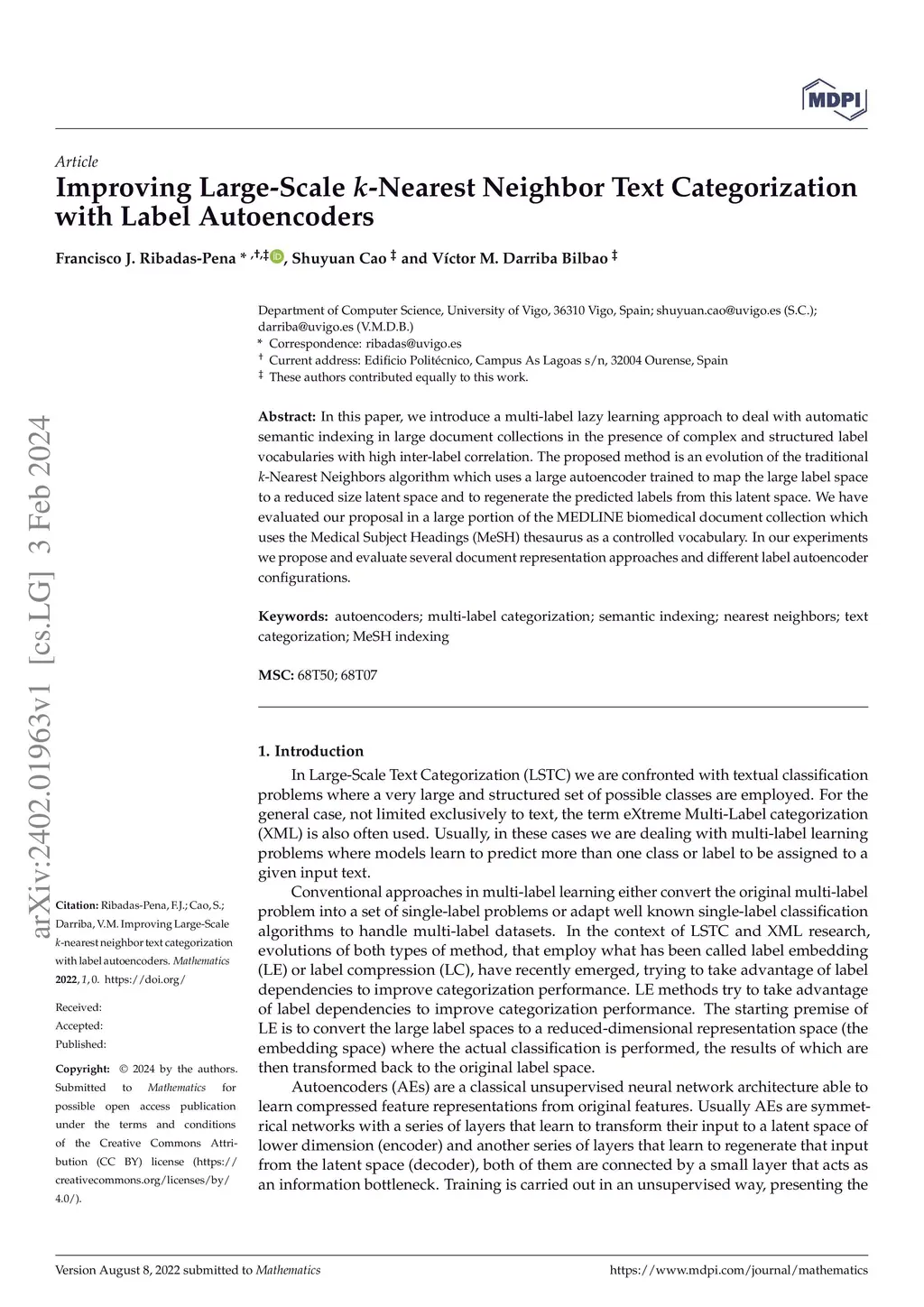 In this paper, we introduce a multi-label lazy learning approach to deal with automatic semantic indexing in large document collections in the presence of complex and structured label vocabularies with high inter-label correlation. The proposed method is an evolution of the traditional k-Nearest Neighbors algorithm which uses a large autoencoder trained to map the large label space to a reduced size latent space and to regenerate the predicted labels from this latent space. We have evaluated our proposal in a large portion of the MEDLINE biomedical document collection which uses the Medical Subject Headings (MeSH) thesaurus as a controlled vocabulary. In our experiments we propose and evaluate several document representation approaches and different label autoencoder configurations.