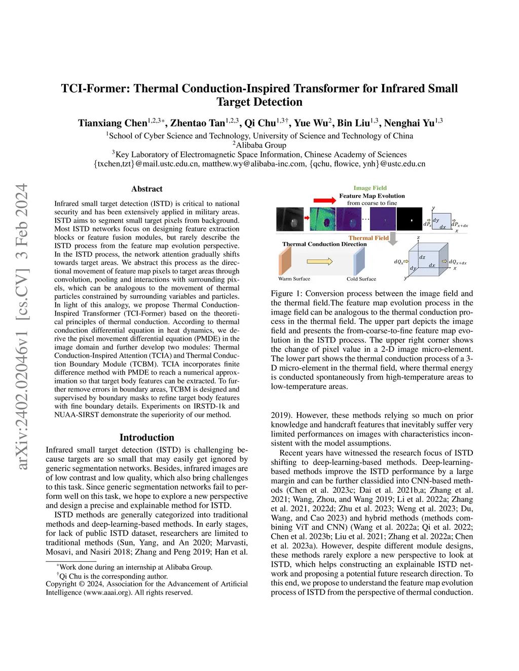 TCI-Former: Thermal Conduction-Inspired Transformer for Infrared Small