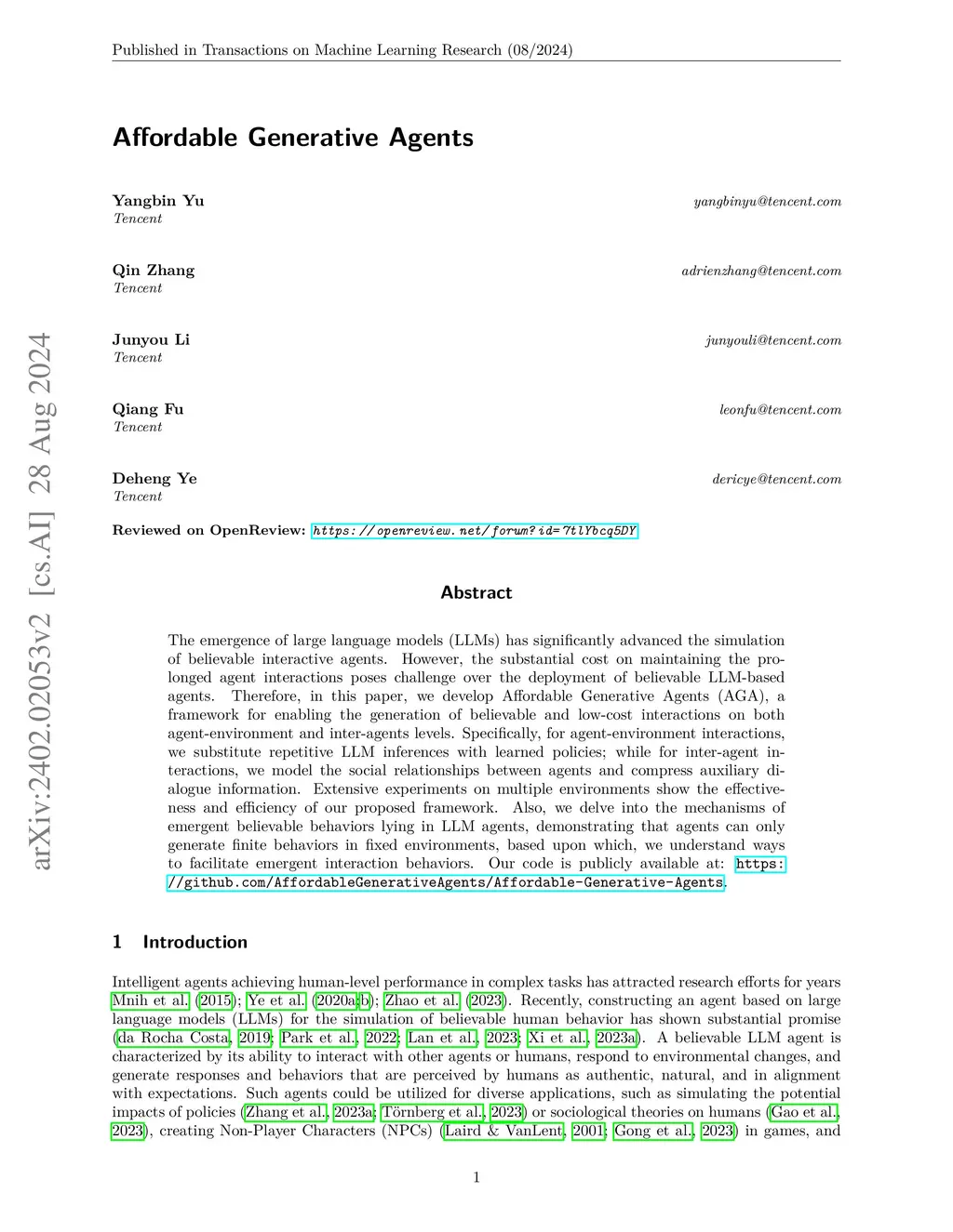 Affordable Generative Agents