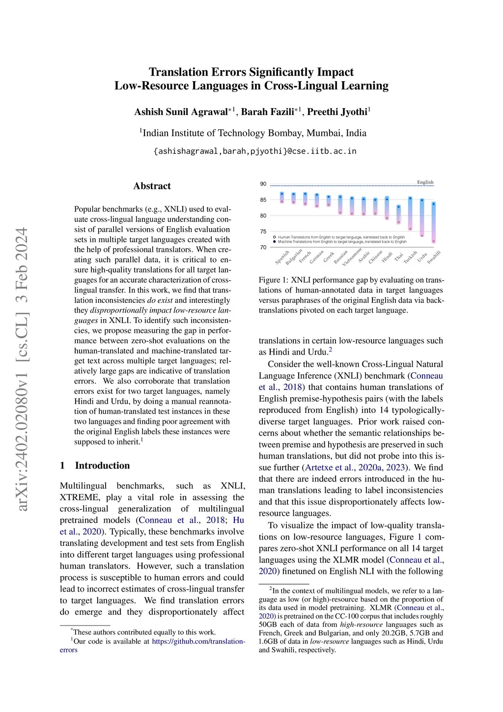 Popular benchmarks (e.g., XNLI) used to evaluate cross-lingual language understanding consist of parallel versions of English evaluation sets in multiple target languages created with the help of professional translators. When creating such parallel data, it is critical to ensure high-quality translations for all target languages for an accurate characterization of cross-lingual transfer. In this work, we find that translation inconsistencies do exist and interestingly they disproportionally impact low-resource languages in XNLI. To identify such inconsistencies, we propose measuring the gap in performance between zero-shot evaluations on the human-translated and machine-translated target text across multiple target languages; relatively large gaps are indicative of translation errors. We also corroborate that translation errors exist for two target languages, namely Hindi and Urdu, by doing a manual reannotation of human-translated test instances in these two languages and finding poor agreement with the original English labels these instances were supposed to inherit.