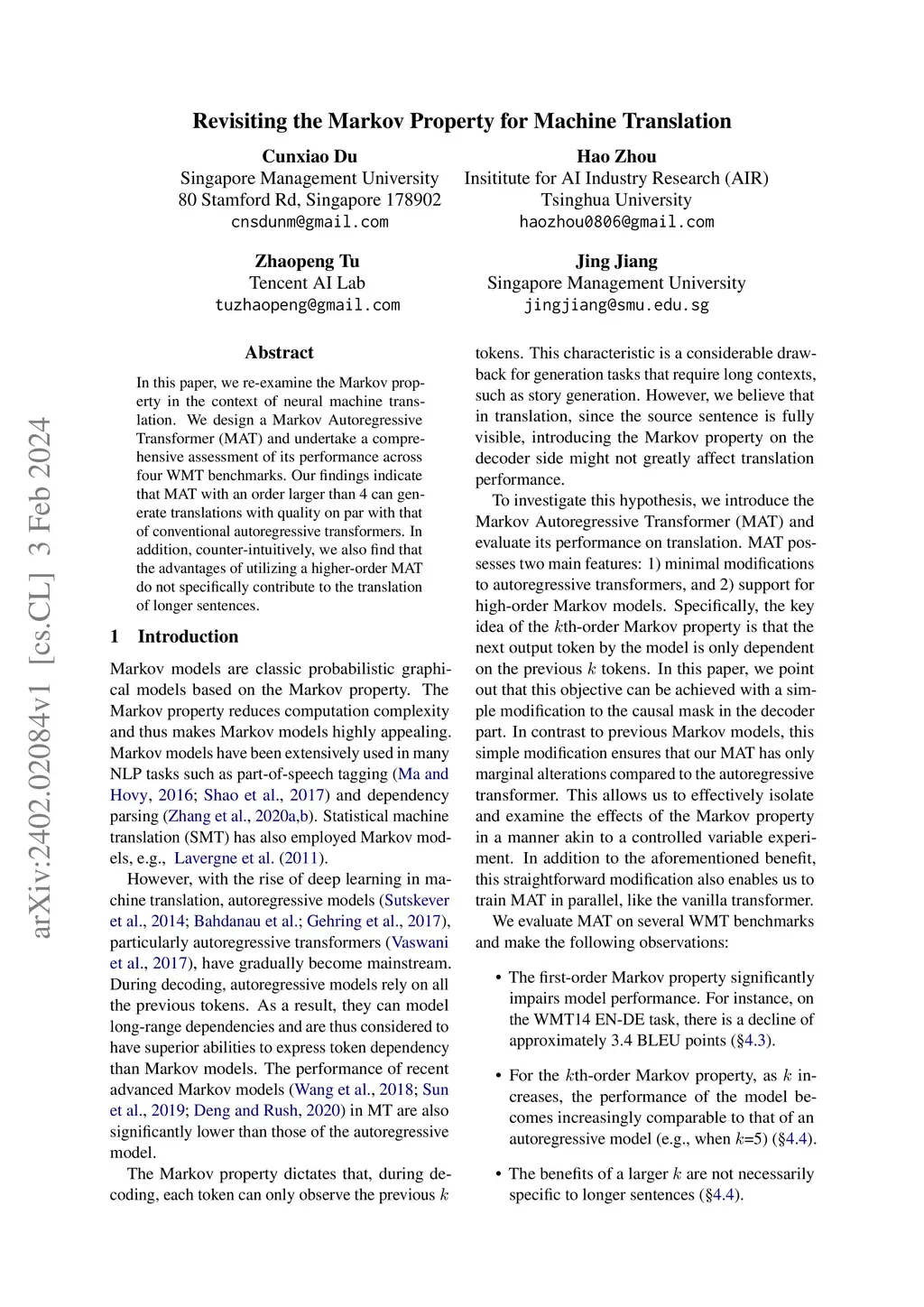 Revisiting the Markov Property for Machine Translation
