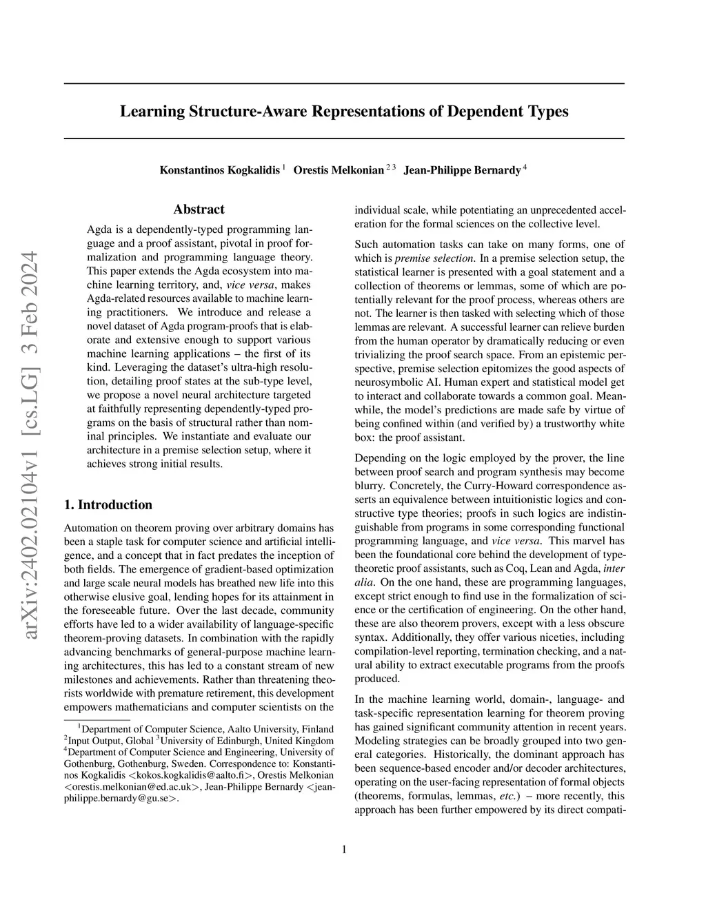Agda is a dependently-typed programming language and a proof assistant, pivotal in proof formalization and programming language theory. This paper extends the Agda ecosystem into machine learning territory, and, vice versa, makes Agda-related resources available to machine learning practitioners. We introduce and release a novel dataset of Agda program-proofs that is elaborate and extensive enough to support various machine learning applications -- the first of its kind. Leveraging the dataset's ultra-high resolution, detailing proof states at the sub-type level, we propose a novel neural architecture targeted at faithfully representing dependently-typed programs on the basis of structural rather than nominal principles. We instantiate and evaluate our architecture in a premise selection setup, where it achieves strong initial results.