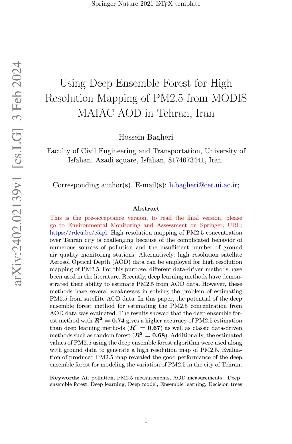 Using Deep Ensemble Forest for High Resolution Mapping of PM2.5 from