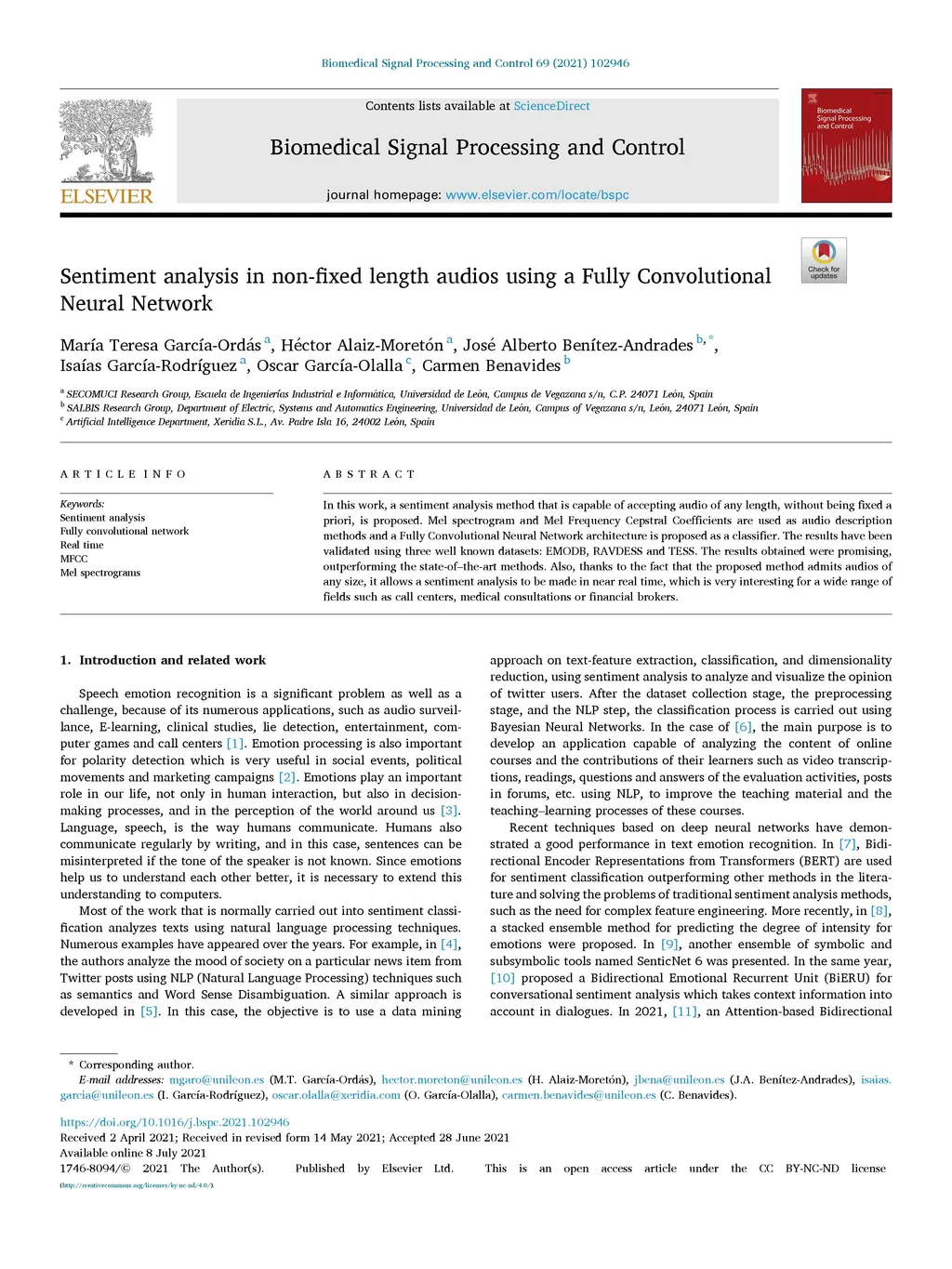 Sentiment analysis in non-fixed length audios using a Fully