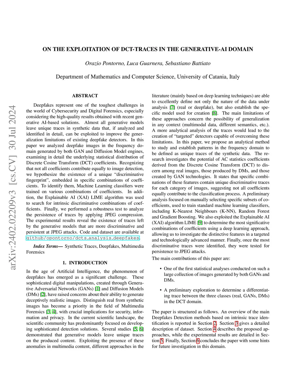 On the Exploitation of DCT-Traces in the Generative-AI Domain