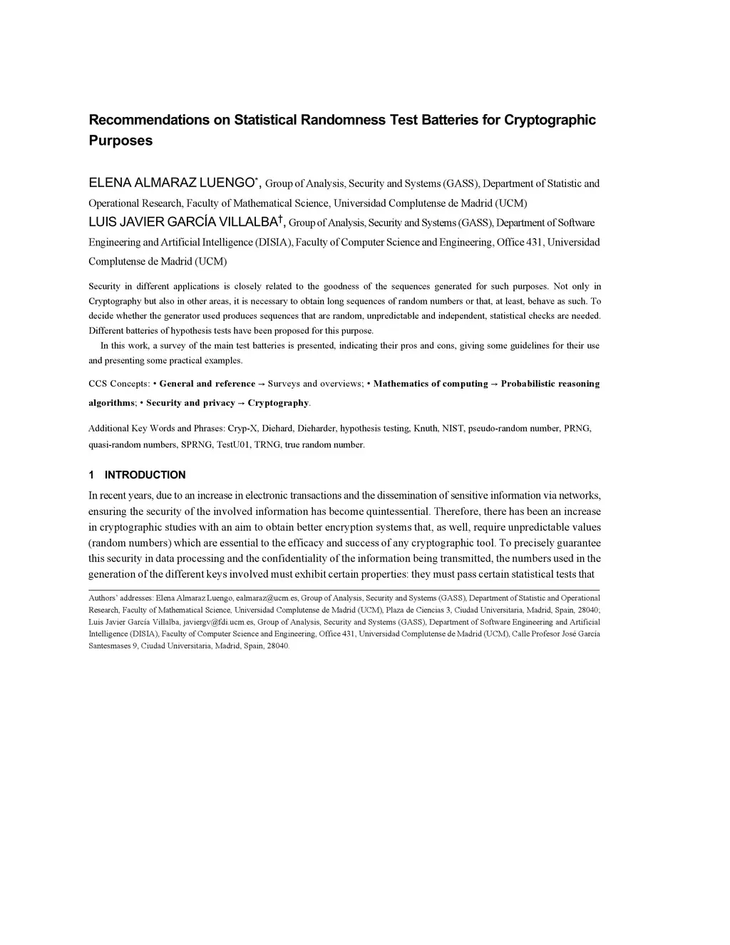 Security in different applications is closely related to the goodness of the sequences generated for such purposes. Not only in Cryptography but also in other areas, it is necessary to obtain long sequences of random numbers or that, at least, behave as such. To decide whether the generator used produces sequences that are random, unpredictable and independent, statistical checks are needed. Different batteries of hypothesis tests have been proposed for this purpose. In this work, a survey of the main test batteries is presented, indicating their pros and cons, giving some guidelines for their use and presenting some practical examples.