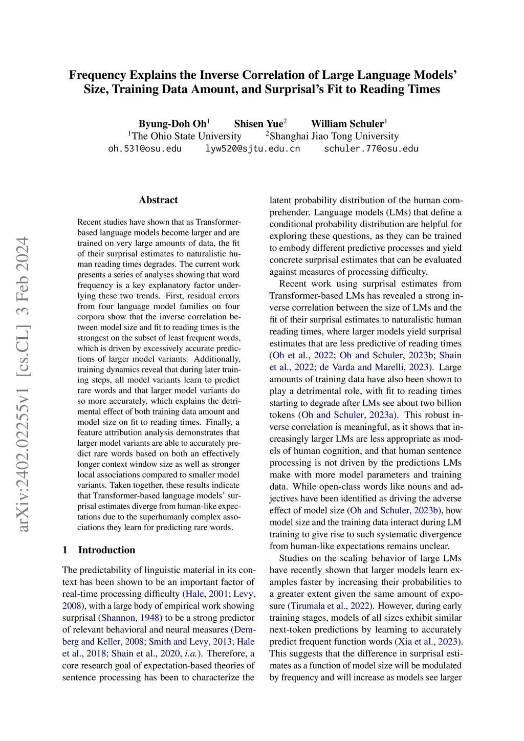 Size, Training Data Amount, and Surprisal's Fit to Reading Times
