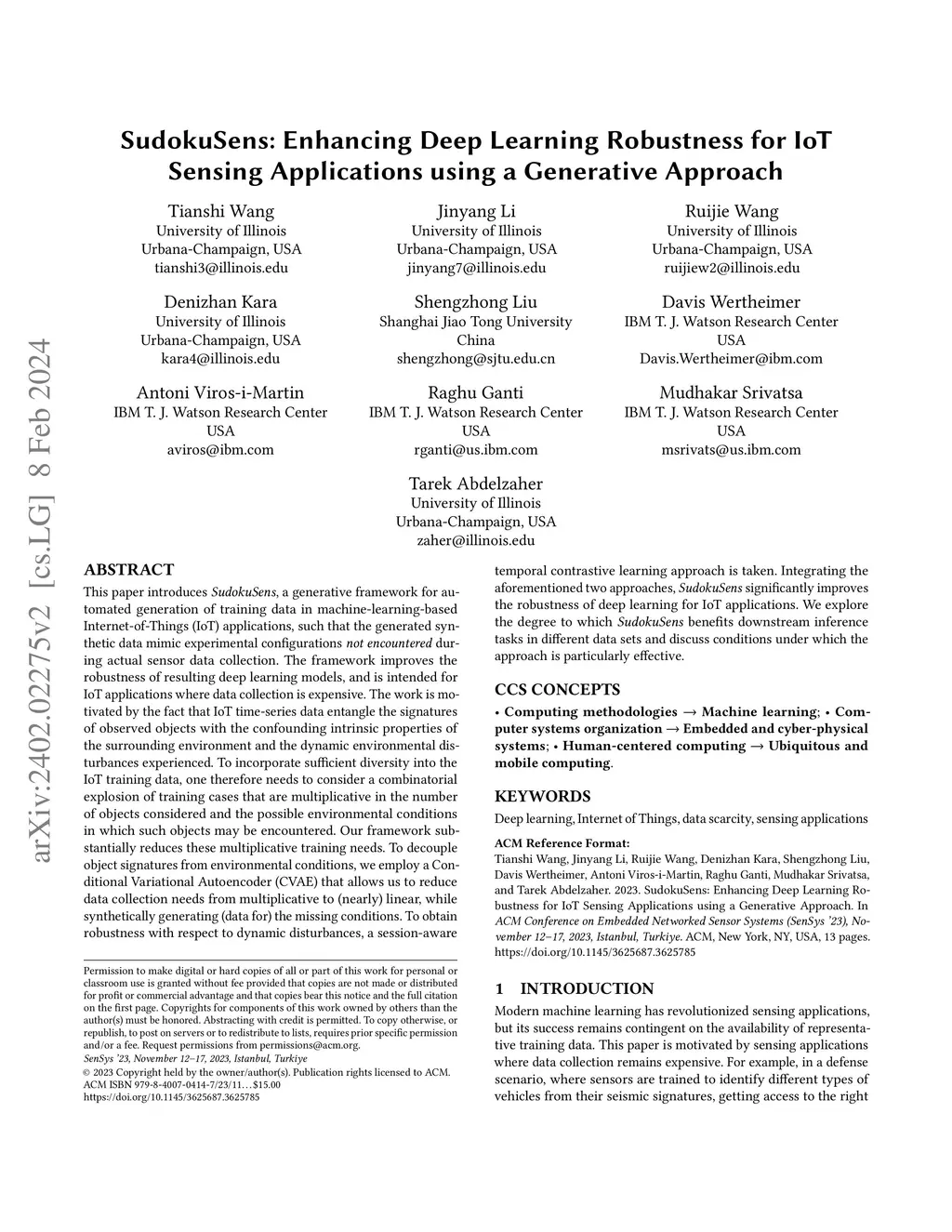 SudokuSens: Enhancing Deep Learning Robustness for IoT Sensing